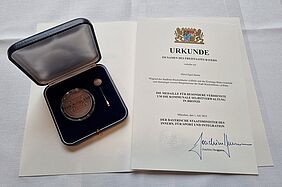 Innenstaatssekretär Sandro Kirchner zeichnete in einer Feierstunde im Großen Sitzungssaal der Regierung von Unterfranken Egon Sturm für sein herausragendes kommunalpolitisches Engagement mit der Kommunalen Verdienstmedaille in Bronze aus. Insgesamt erhielten in Würzburg sieben verdiente Kommunalpolitiker aus Unterfranken die Kommunale Verdienstmedaille.