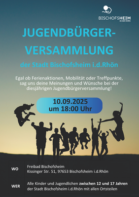 Ob Ferienaktionen, Mobilität oder Treffpunkte; sag uns deine Meinungen und Wünsche bei der diesjährigen Jugendbürgerversammlung am Mittwoch, 10.09.2025 um 18:00 Uhr im Freibad