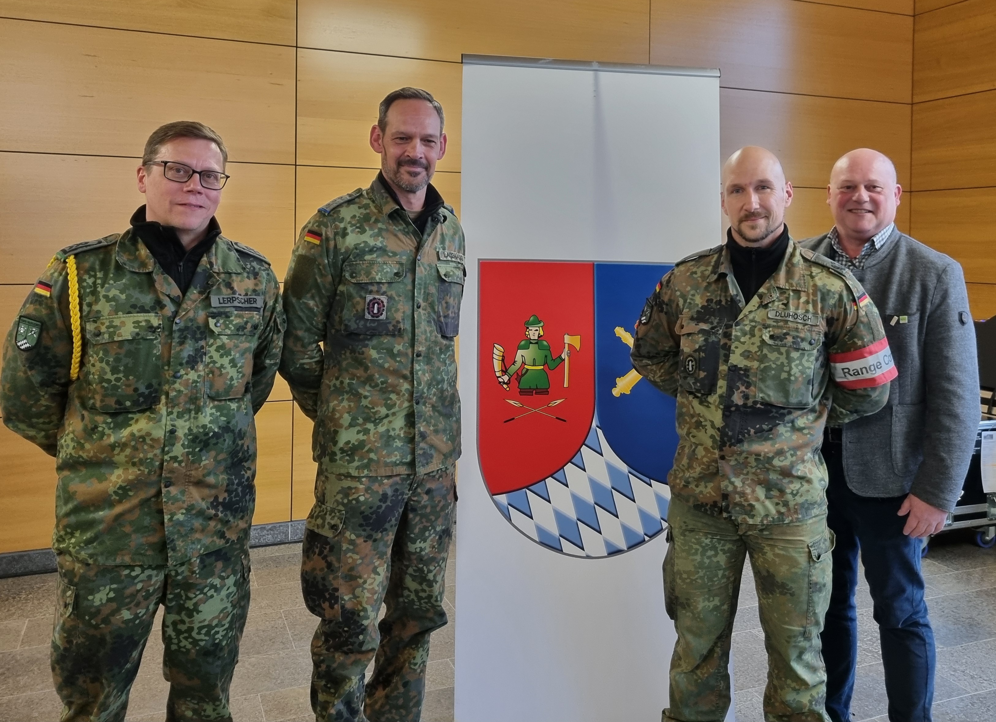 v.l.n.r.: StFw Holger Lerpscher, Hptm Enrico Langhärig, OTL Pascal Dluhosch, Bürgermeister Georg Seiffert