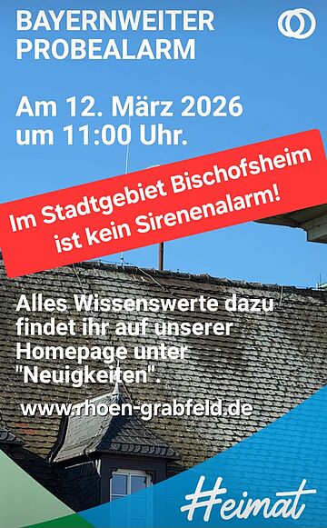 Am 12. März findet um 11:00 Uhr ein bayernweiter Sirenenalarm statt. Dies gilt jedoch nicht für das Stadtgebiet Bischofsheim
